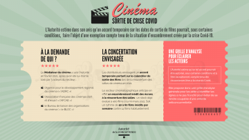 En janvier dernier, l'ADRC, l'AFCAE et le BLOC avaient envoyé une lettre conjointe au Médiateur du Cinéma qui, après analyse, l'a conduit à saisir l'Autorité de La Concurrence sur la possibilité d’une concertation entre les distributeurs de films visant à la mise en place temporaire d’un calendrier régulé de sortie des films, jusqu’au retour à une situation normale. L'ADLC a rendu son avis aujourd'hui.