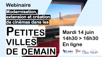 Mardi 14 juin à 14h30, l'ADRC organisera un webinaire consacré au programme Petites villes de demain (PVD). À cette occasion, elle présentera sa dernière publication à destination des porteurs de projets de cinémas dans les communes et intercommunalités de moins de 20 000 habitants.