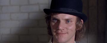 Le film le plus controversé de Stanley Kubrick est adapté du roman d’Anthony Burgess, L’Orange mécanique (1962). Malcolm McDowell, jeune acteur de 27 ans, interprète Alex, le narrateur du film et du roman. Orange Mécanique, situé dans un futur proche, dépeint une société bureaucratique et sans utopie, qui dépouille les hommes de leur liberté et dignité. Sexe et violence sont constants dans la vie d’Alex. Lorsqu’il est arrêté, il se soumet à une rigoureuse rééducation qui annihile son agressivité. Relâché, il découvre le paradoxe de sa guérison : sans défense, il subit les actes de vengeance de ses anciennes victimes. L’action se déroule dans des décors futuristes inspirés par le pop art, à l’instar du mobilier du Korova Milk Bar faisant penser aux sculptures d’Allen Jones, ou les sculptures phalliques de Mel Ramos. L’utilisation de la musique classique pour accompagner les comportements violents suggère que la culture n’est pas un bouclier contre la barbarie.