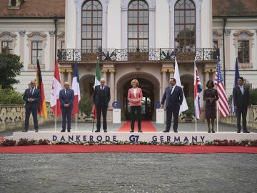 Réunis dans un château en Allemagne pour leur sommet annuel, les dirigeants des pays du G7 s’installent en bordure d’une forêt pour préparer leur déclaration.